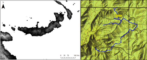 The second botanical expedition took place in the Whiteman Range, West New Britain, from May 6-19, 2011. The field work took place in the Mosa-Liem logging area and along Kilis River, mostly in secondarily logged forest, along skid tracks, but also in unlogged forest corridors (Figure 1). During the five field days, 98 specimen collections were made. Specimens were alcohol preserved, dried at the PNG Forest Research Institute & National Herbarium in Lae, and have been preliminarily identified by LAE staff, the PI, and Dr Max van Balgooy. A further 150 live orchid specimens and 20 Hoya species were collected by collaborator Dr. Phil Shearman, and are being cultivated at the University of Papua New Guinea. Collections were also made along the intertidal zone adjacent to the Mahonia Na Dari property, Kimbe Bay. Specimens have been successfully exported from PNG and accessioned into the Herbarium Pacificum (Accession No. 2011-100) and the PNG National Herbarium. Duplicates are being processed and will be distributed to collaborating institutions and specialists in 2012. Tissues for each of the collection numbers have been accessioned into the Pacific Center for Molecular Biodiversity (PCMB 6370-6467) and are available for use by researchers. Images of the expedition can be found at http://png-bpbm.smugmug.com/Fieldwork/West-New-Britain-2011.